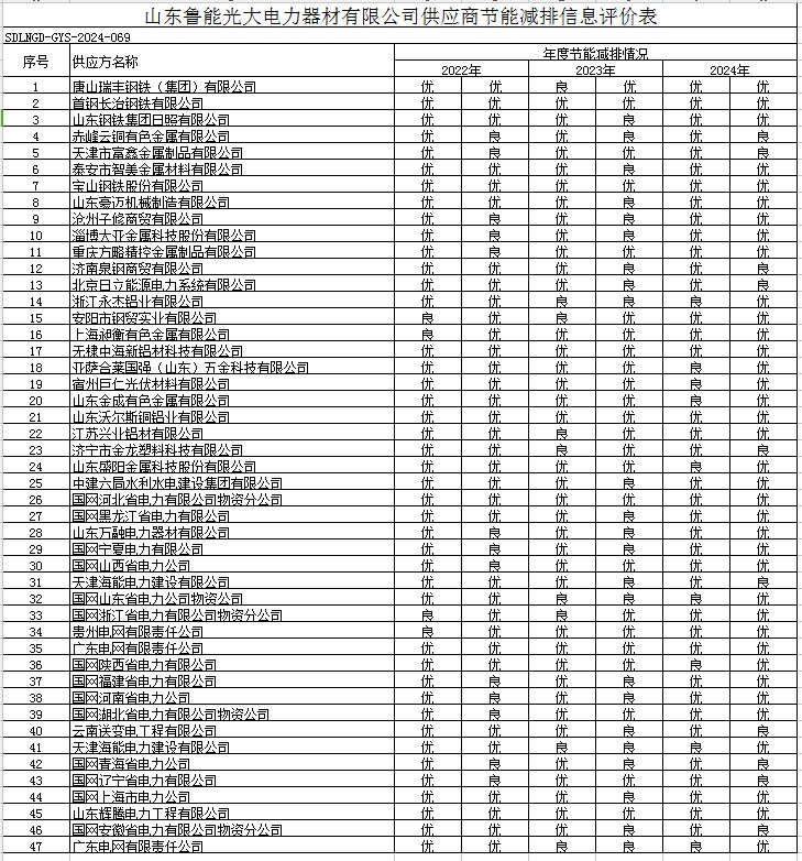 山东鲁能光大电力器材有限公司供应商节能减排信息评价表 2025-3-12 本文被阅读 639 次