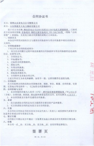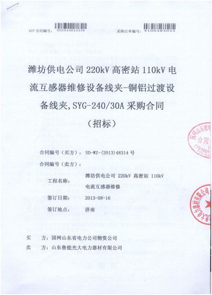电流互感器维修设备线夹-铜铝过度设备线夹,SYG-240/30A采购合同 2016-2-16 本文被阅读 2476 次
